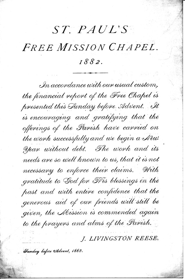 1882 Annual Report, St. Paul’s Free Mission Chapel