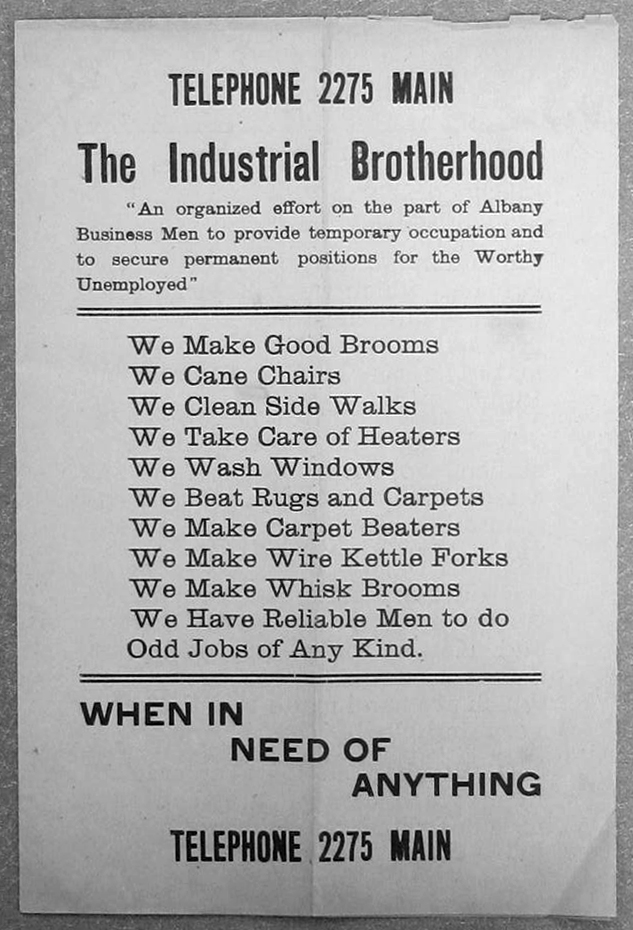 brotherhood-flyer-page-1 ← Previous Next → Albany Industrial Brotherhood Flyer, page 1 (credit: NYS Manuscripts and Special Collections)