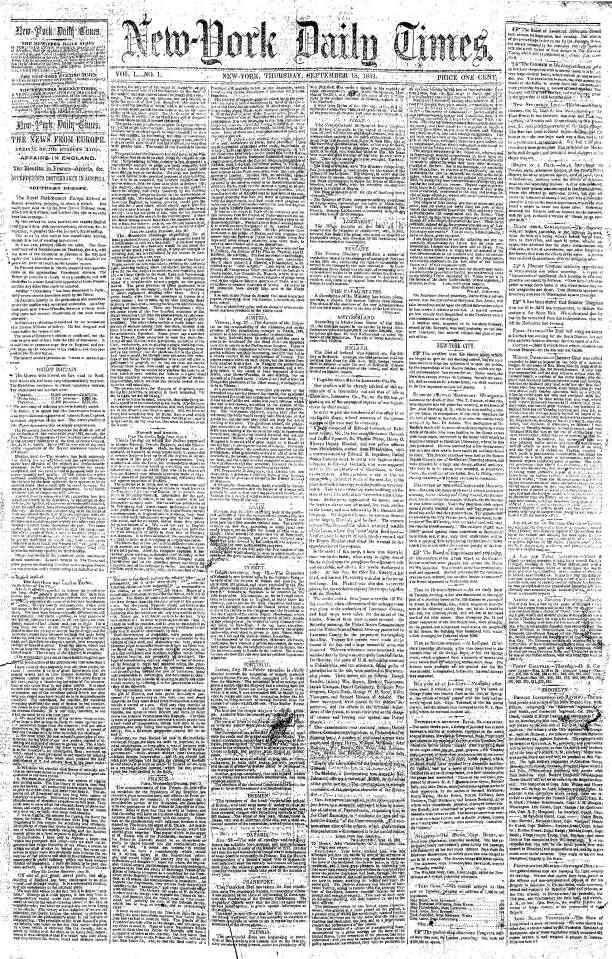 First edition New York Daily Times, 18 Sep 1851