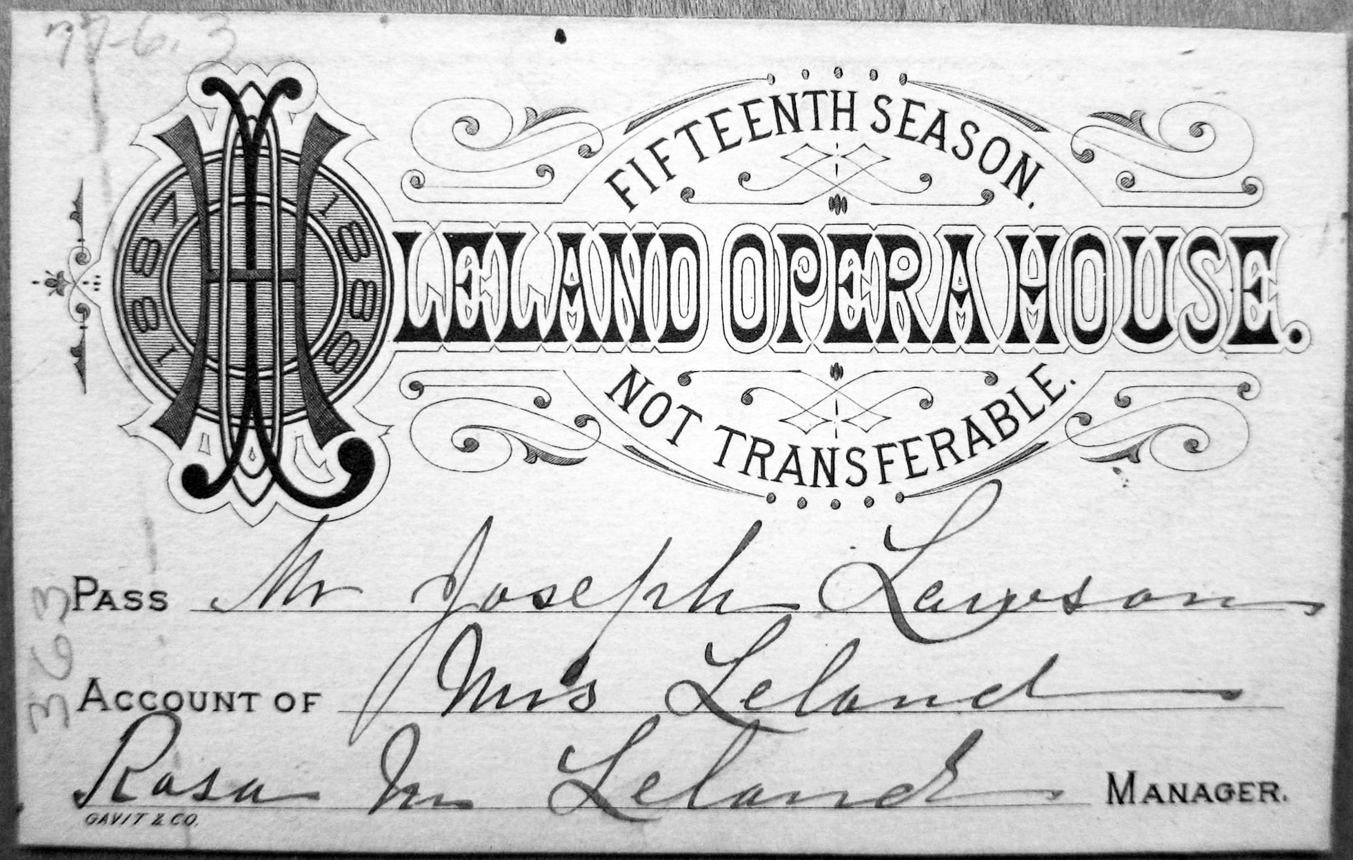 Theater Pass, 1887-1888 Season