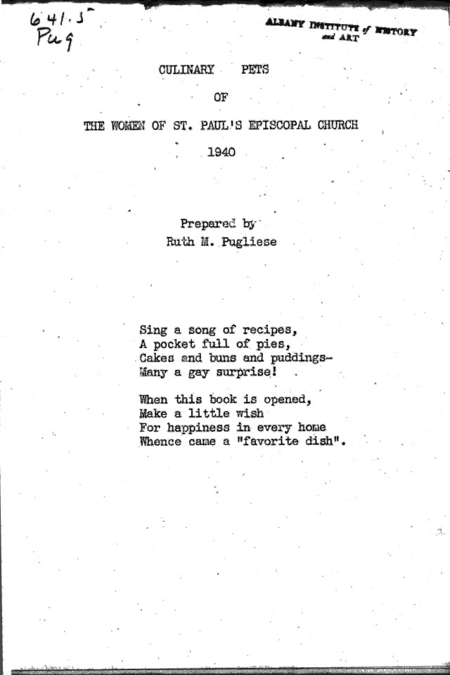 cook book 1940 cover v001 Next → Title page “Culinary Pets of the Women of St. Paul’s Episcopal Church” (1940)