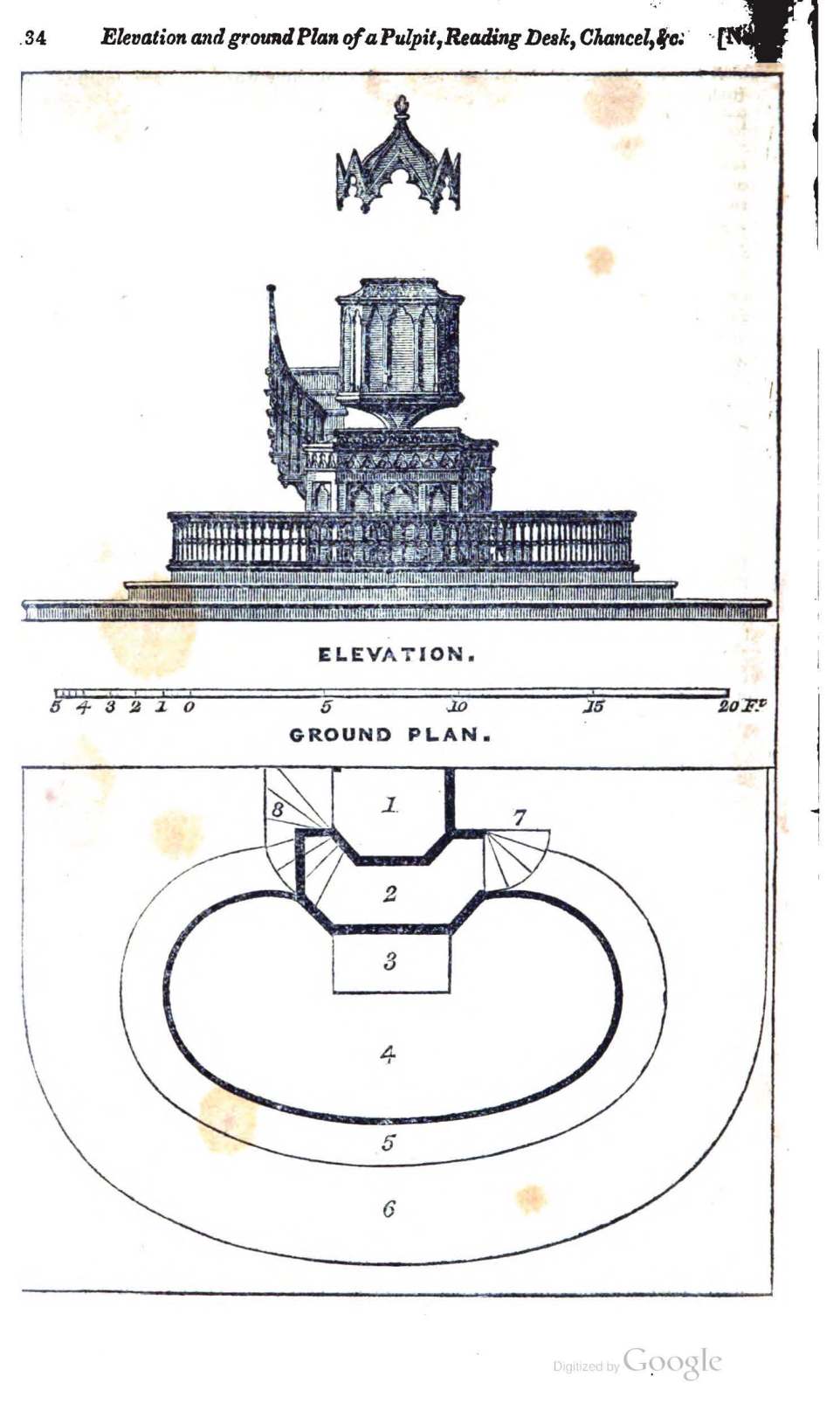 “The principal object is to procure in new churches such an elevation of the chancel that the communion table and rails of the chancel may be seen above the pews from every part of the church. It is desirable also that there should be a platform between the chancel and the pews, of such a rise, that in case of ordinations or confirmations, the persons who stand on it may be seen by the congregation without inconvenience. With this arrangement of the chancel, the interesting solemnities which are performed there may be celebrated in the view of all the congregation. The disappointment will thus be avoided, which always takes place when, from the lowness of the chancel, and from there being no platform around it, the greater part of the congregation cannot witness those holy offices, no small part of the interest of which arises from their being seen.”[x]