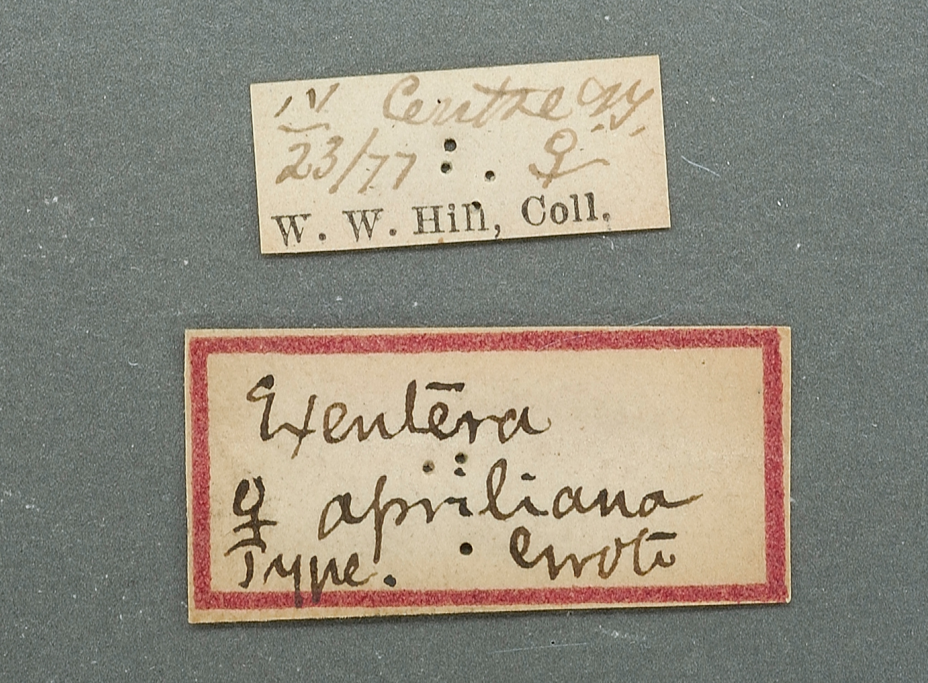 NMNH-aprilana_Grote_1877_Exentera_lab02 ← Previous Next → A label from the W.W. Hill Collection (credit: National Museum of Natural History, Smithsonian Institution)