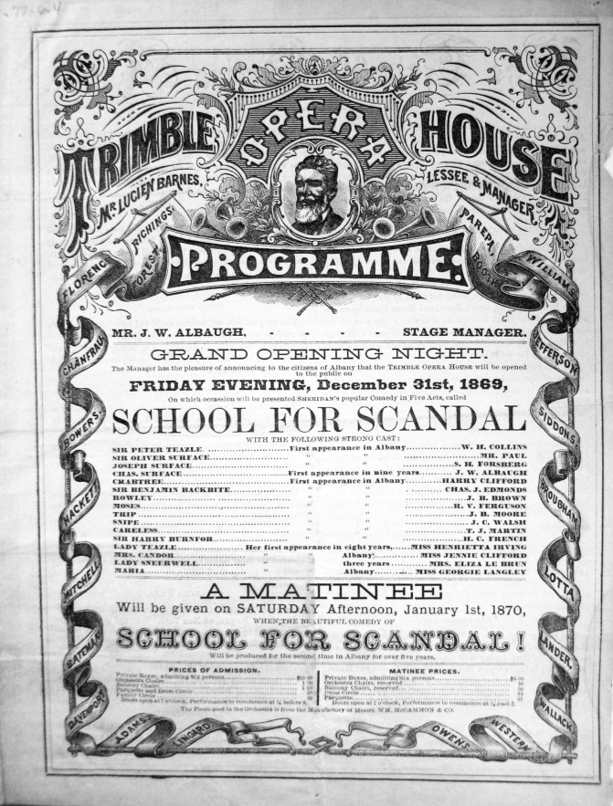 [i] “The Opera House Sold to Warren F. Leland,” Albany Morning Express 08 May 1876; “The Trimble Opera House: Its Legal History – The Curtain Rung Up on the Last Act – A Foreclosure Suit Commenced” Albany Evening Times Dec (probably 27) 1880; Daily Argus 11 May 1876.